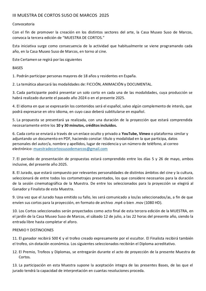 III Convocatoria de Muestra de Cortos Suso de Marcos 2025