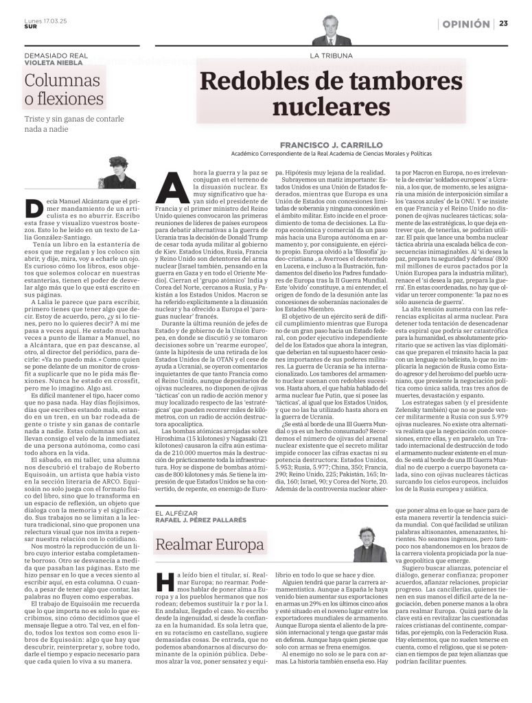 Os envío estos dos artículos de opinión, que os pueden interesar, de los que es autor El Excmo. Sr. Francisco Carrillo Montesinos, Académico de la Real Academia de Bellas Artes de Málaga y de la Real Academia Nacional de Ciencias Morales y Políticas.